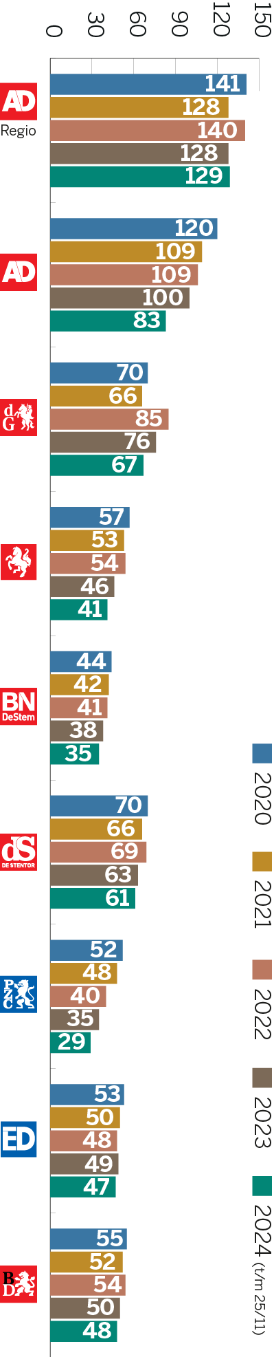We vragen het onze abonnees in Gelderland, Brabant, Twente of Zeeland elk jaar opnieuw, maar we kennen het antwoord: zij lezen onze sites, apps en kranten vooral vanwege het regionale nieuws. Dat geldt trouwens niet alleen voor lezers uit die genoemde streken. Ook de AD-lezers in en rond Den Haag, Utrecht of Rotterdam zetten ‘lokaal nieuws’ bovenaan hun lijstje van favoriete artikelen. Meteen daaronder staat vaak hun favoriete voetbalclub.