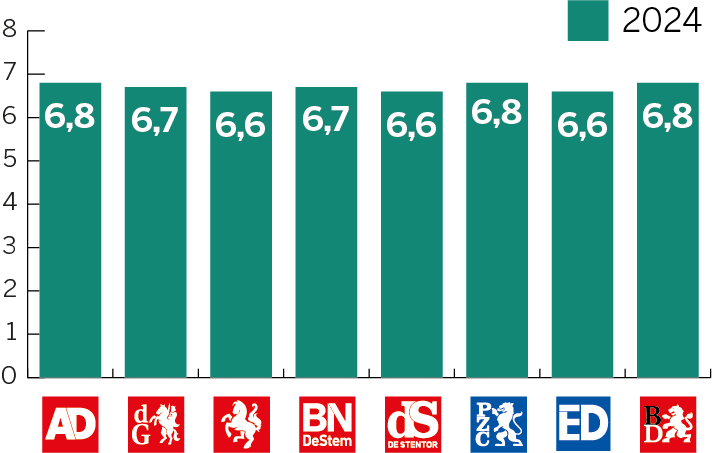 Dit cijfer is afkomstig uit recent onderzoek naar merkvertrouwen in opdracht van DPG Media. Daarbij geeft een algemeen publiek, dus niet alleen abonnees of bezoekers, vertrouwen in verschillende nieuwsmedia aan op een schaal van 0 (helemaal niet betrouwbaar) tot 10 (uiterst betrouwbaar). Daarnaast worden abonnees uitgesplitst, die hun titel doorgaans meer dan gemiddeld vertrouwen. Deze onderzoeksmethode en de uitkomsten komen overeen met die van het jaarlijkse Digital News Report van het Reuters Institute in Oxford. De Nederlandse en Vlaamse gemiddelde vertrouwenscijfers liggen in die monitor hoger dan die van nieuwsmedia in de omringende Europese landen.